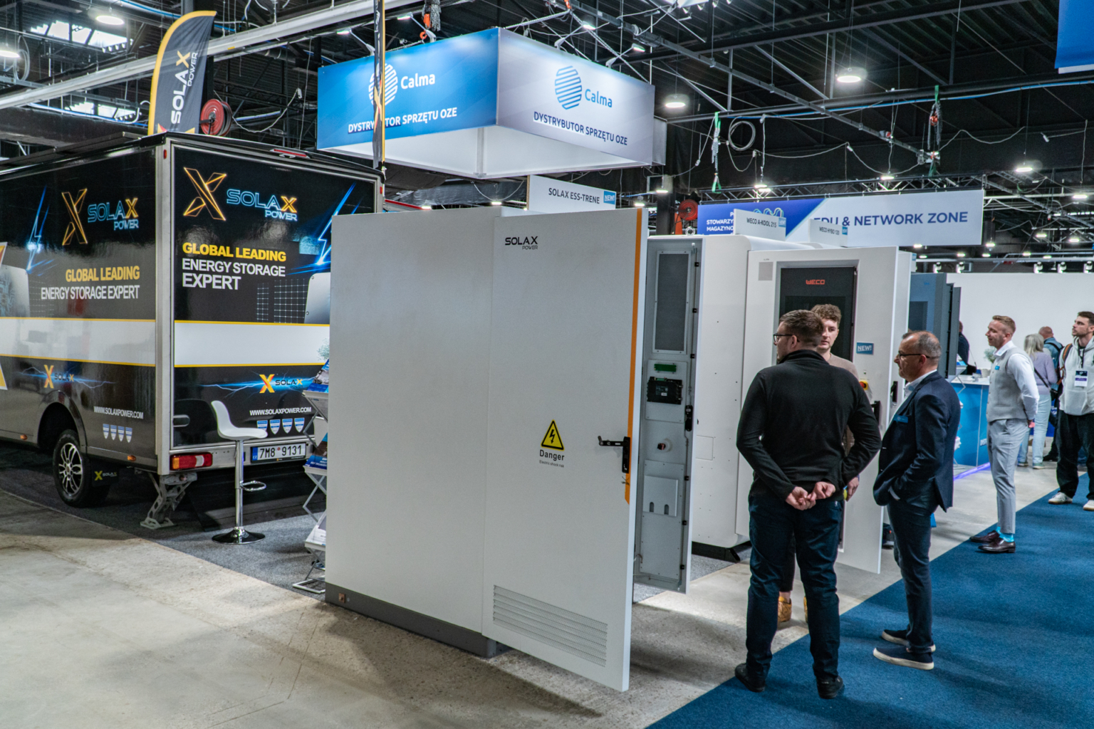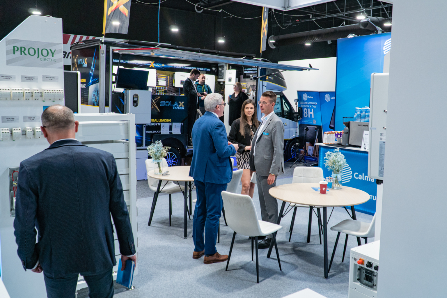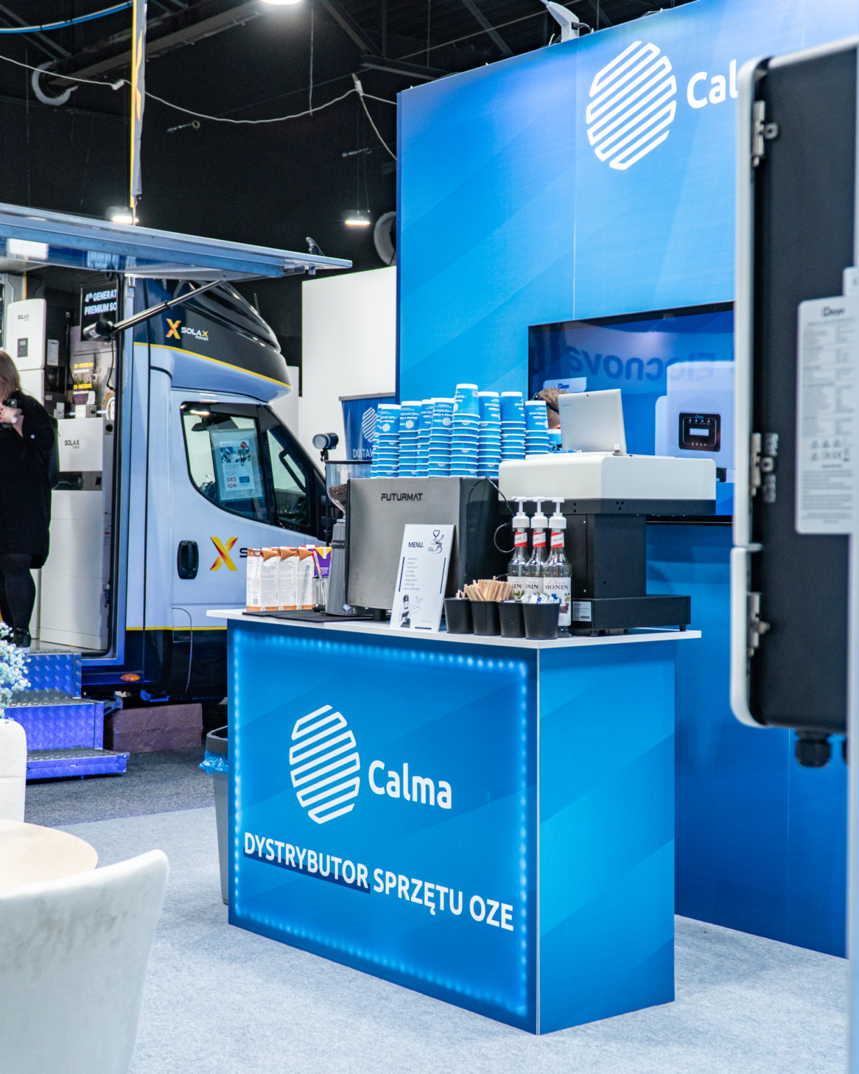 Na stoisku zastosowano nietypowe rozwiązanie, które stało się jego centralnym punktem – mobilny showroom-van Solax Power, prezentujący najnowsze technologie i rozwiązania od firmy Solax Power. To innowacyjne połączenie przestrzeni targowej z mobilnym centrum prezentacyjnym wyróżniało stoisko na tle innych ekspozycji i przyciągało licznych odwiedzających.